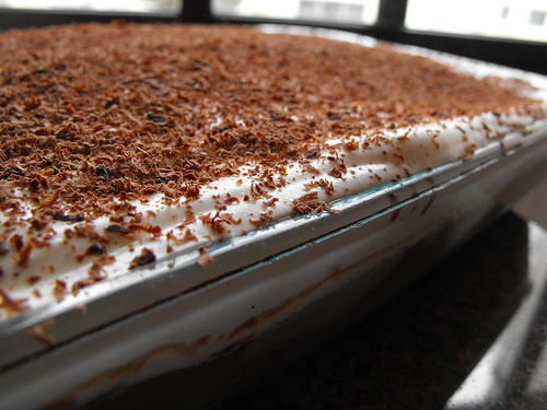 Glacê: Leve o chocolate partido ao lume em banho maria a derreter com a manteiga.