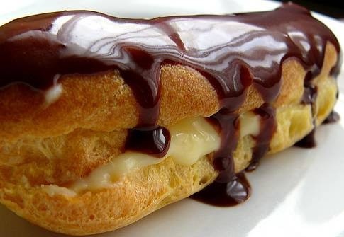 Deita-se um pouco desta cobertura sobre a superfície de cada éclair, tendo o cuidado para que não escorra para os lados.